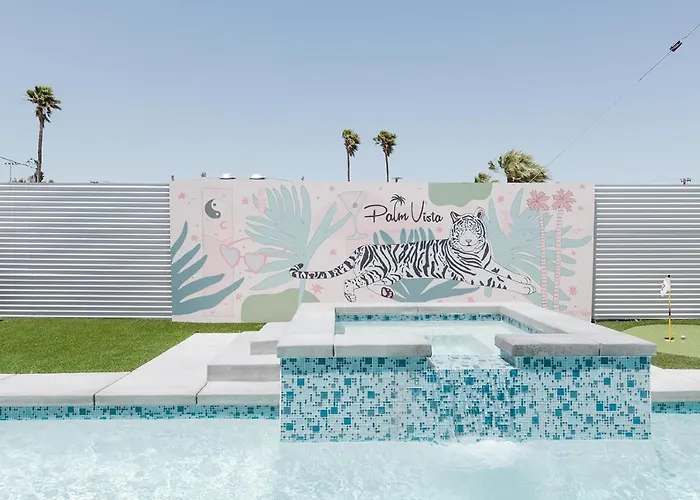 Featuring a patio and a balcony, Palm Vista By Rather Be Properties provides conveniences like an ironing set and air conditioning, as well as media facilities, like a TV set and wireless internet. The interior elements include a writing table, as well as a fireplace. This accommodation comes with a bathroom with a separate toilet, a bath, and a shower. There are dryers, toiletries, and bath sheets for guests' comfort.
